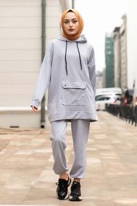 Modalamelif Cep Çıtçıtlı Kapüşonlu Takım Gri