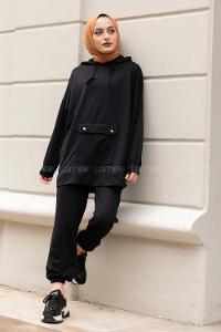 Modalamelif Cep Çıtçıtlı Kapüşonlu Takım Siyah