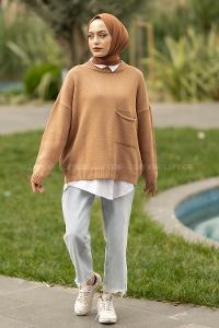 Modalamelif Cep Detaylı Basic Kazak Camel