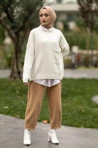 Modalamelif Cep Detaylı Basic Kazak Ekru