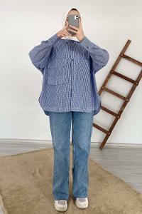 Lamelif Omuz Vatka Detaylı Tesettür Gömlek Lacivert