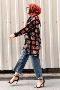 Modalamelif Çiçek Desen Baskılı Gömlek Siyah
