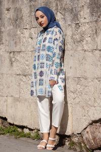 Lamelif Omuz Vatka Detaylı Tesettür Gömlek Beyaz