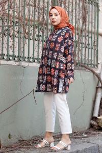 Lamelif Omuz Vatka Detaylı Tesettür Gömlek Acı Kahve