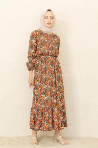 Lamelif Taş Detaylı Tesettür Elbise Soft Kahve