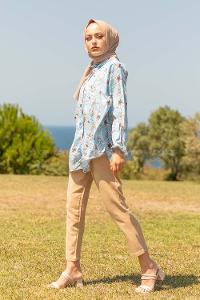 Modalamelif Çiçek Desen Gömlek Turkuaz