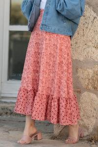 Modalamelif Çiçek Desenli Eteği Fırfır Detaylı Etek Gül
