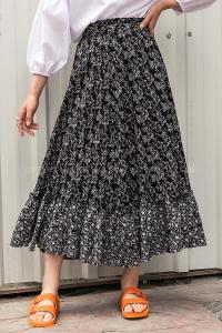 Modalamelif Çiçek Desenli Eteği Fırfır Detaylı Etek Siyah