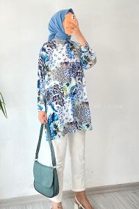 Modalamelif Desenli Önü Düğmeli Gömlek Mavi