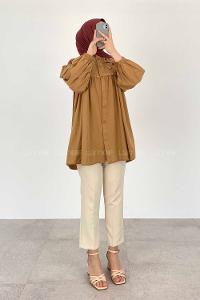 Lamelif Manşeti Biyeli Tunik Acı Kahve