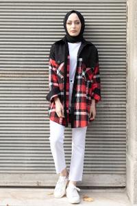 Modalamelif Çif Cepli Ekose Kadife Gömlek Kırmızı