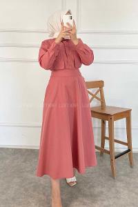 Modalamelif Çift Cep Detaylı Boydan Düğmeli Etekli Takım Gül