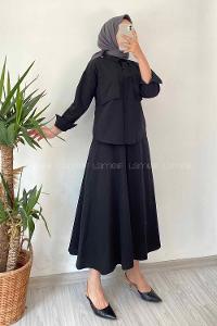 Lamelif Süet Etekli Tesettür Takım Siyah