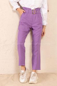 Modalamelif Çift Cep Gold Kemerli Pantolon Lila