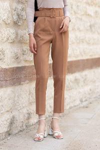 Modalamelif Çift Cep Toka Kemerli Pantolon Camel