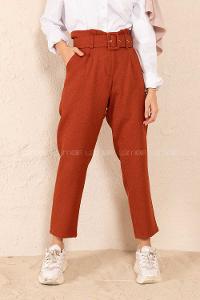 Modalamelif Çift Cep Toka Kemerli Pantolon Kiremit