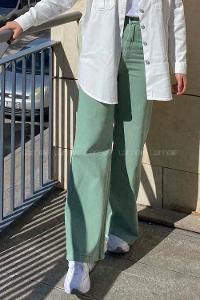 Modalamelif Çift Cepli Bol Paça Jean Mint Yeşili