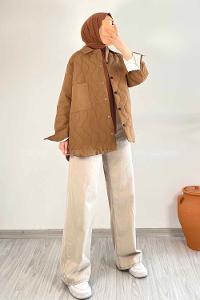 Modalamelif Çift Cepli Boydan Düğmeli Şişme Mont Kahverengi