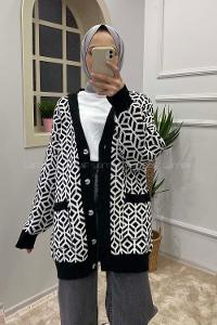 Modalamelif Çift Cepli Desenli Hırka Siyah