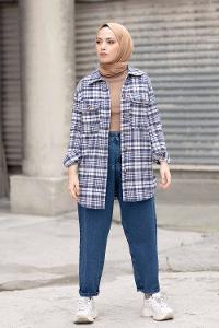 Modalamelif Çift Cepli Ekose Desen Gömlek İndigo