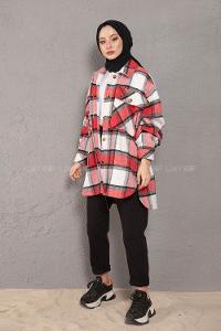 Modalamelif Çift Cepli Ekose Desen Gömlek Kırmızı