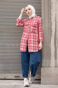Modalamelif Çift Cepli Ekose Desen Gömlek Kırmızı