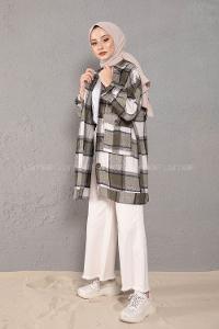 Modalamelif Çift Cepli Ekose Desen Oduncu Gömlek Haki