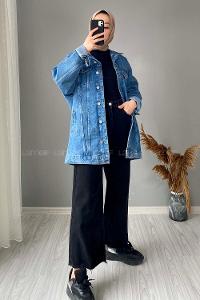 Modalamelif Çift Cepli Gabardin Ceket Kot Mavisi