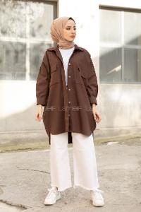 Lamelif Omuz Vatka Detaylı Tesettür Gömlek Acı Kahve