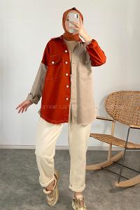 Modalamelif Çift Cepli Garnili Ceket Kiremit Bej