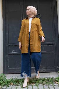 öü boydan düğmeli, çift cep detaylı tarz gömlek.