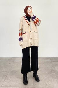 Modalamelif Çift Cepli Kol Garnili Hırka Bej