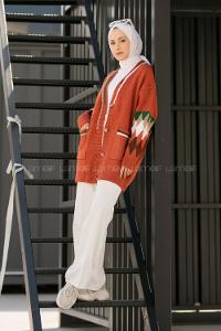Modalamelif Çift Cepli Kol Garnili Hırka Kiremit