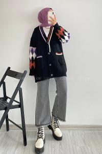 Modalamelif Çift Cepli Kol Garnili Hırka Siyah