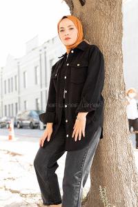 Modalamelif Çift Cepli Önü Düğmeli Ceket Siyah