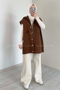 Lamelif Önü Çıtçıt Düğmeli Yelek Kahverengi