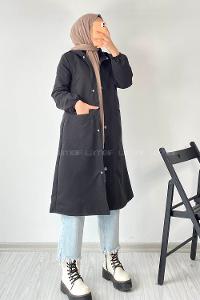 kapüşonlu, apolet detaylı trençkot