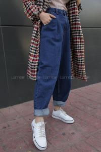 Modalamelif Çift Cepli Balon Mom Jean Koyu Mavi
