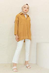 Modalamelif Çift Cepli Poplin Gömlek Taba