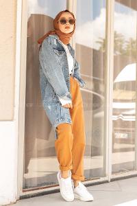li, tırnaklı, gömlek yaka, koyu mavi, spor kot ceket.