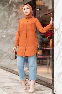 Lamelif Omuz Vatka Detaylı Tesettür Gömlek Acı Kahve