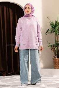 Modalamelif Çift Cepli Yarım Balıkçı Yaka Kazak Lila