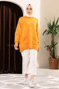 Modalamelif Çift Cepli Yarım Balıkçı Yaka Kazak Oranj