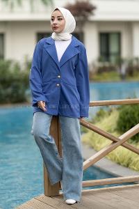 Lamelif Dekoratif Cep Detaylı Tesettür Ceket Lacivert