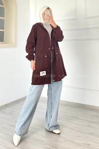 Lamelif Dekoratif Cep Detaylı Tesettür Ceket Acı Kahve