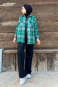 Modalamelif Çift Kapak Cepli Önü Boydan Düğmeli Oduncu Gömlek Yeşil