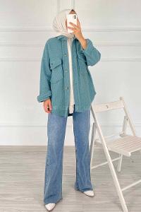 Modalamelif Çift Kapak Cepli Önü Boydan Düğmeli Yünlü Ceket Mint Yeşili