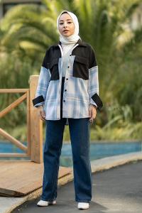 Modalamelif Çift Kapak Cepli Renk Garnili Oduncu Gömlek Mavi-Siyah