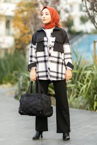 Modalamelif Çift Kapak Cepli Renk Garnili Oduncu Gömlek Siyah-Beyaz
