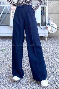 Lamelif Çift Pensli Bol Paça Pantolon Lacivert